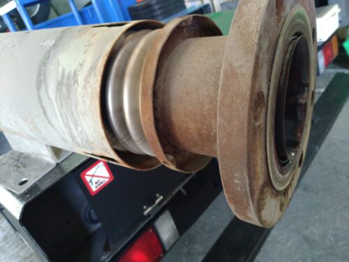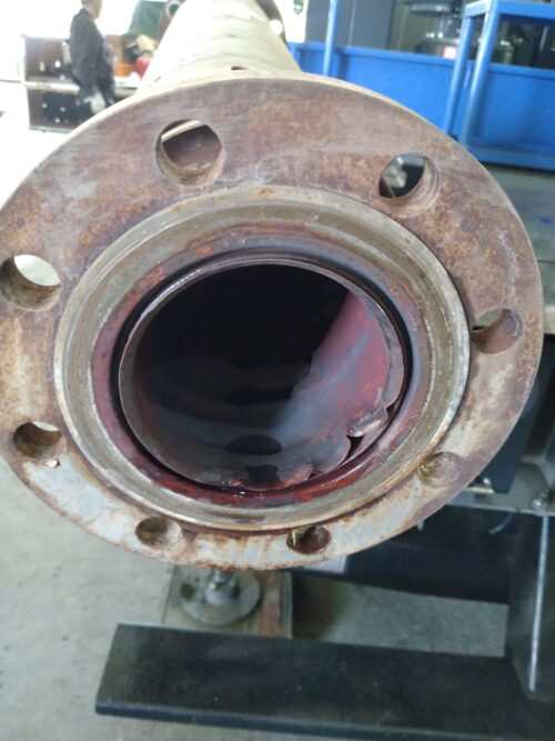 蒸気収縮継手の交換作業では、ただ古い収縮継手を取り外し、新しい収縮継手を取り付けるだけではなく、既存配管が伸びていたり逆に縮んでいたりします、前後の配管が収縮継手を伸ばし過ぎて動いてしまっていて配管の調整が必要となります。